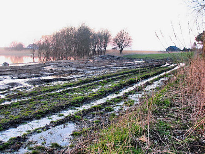 | Hvor begynder mosen? Man kan ikke lade være med at møve sig ind i den. Bemærk hvordan jordpåfyldningerne (ulovlige) går helt ned i mosen. |